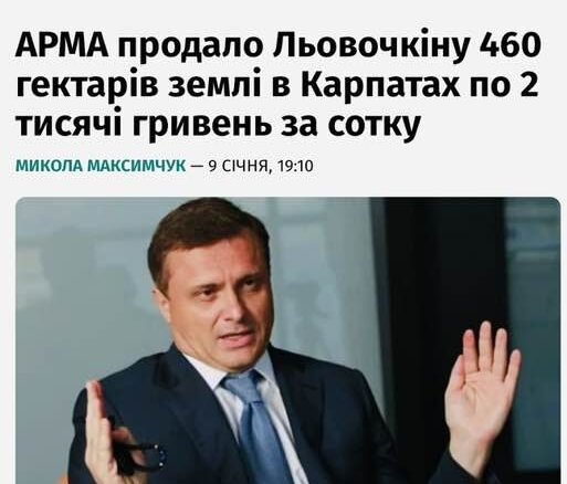 Тож не дивно, що 8 січня 2026 року АРМА продало 460 га заповідних земель на полонині Боржава в Закарпатській області аж за 89,5 млн. грн.( при цьому середня вартість сотки землі становила близько 2 тисяч гривень), а частину з них придбав саме чоловік Льовочкіної та «енергостійкий менеджер» Кличка, очільник «Київгазу» Андрій Вінграновський!